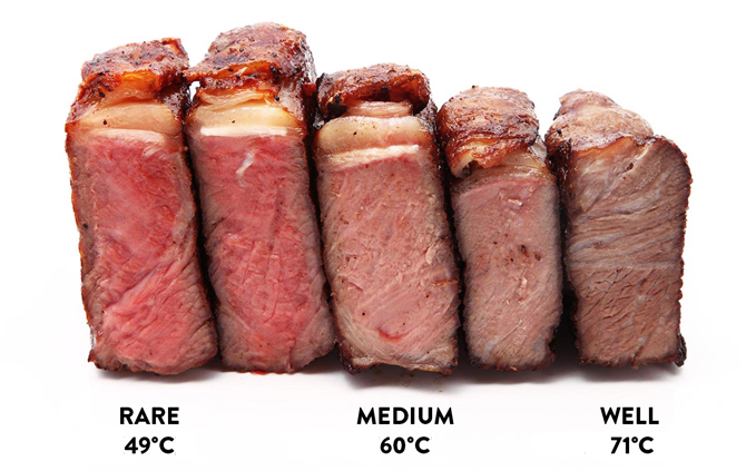 Вот примерный расклад, как выглядят стейки в различных степенях готовности.